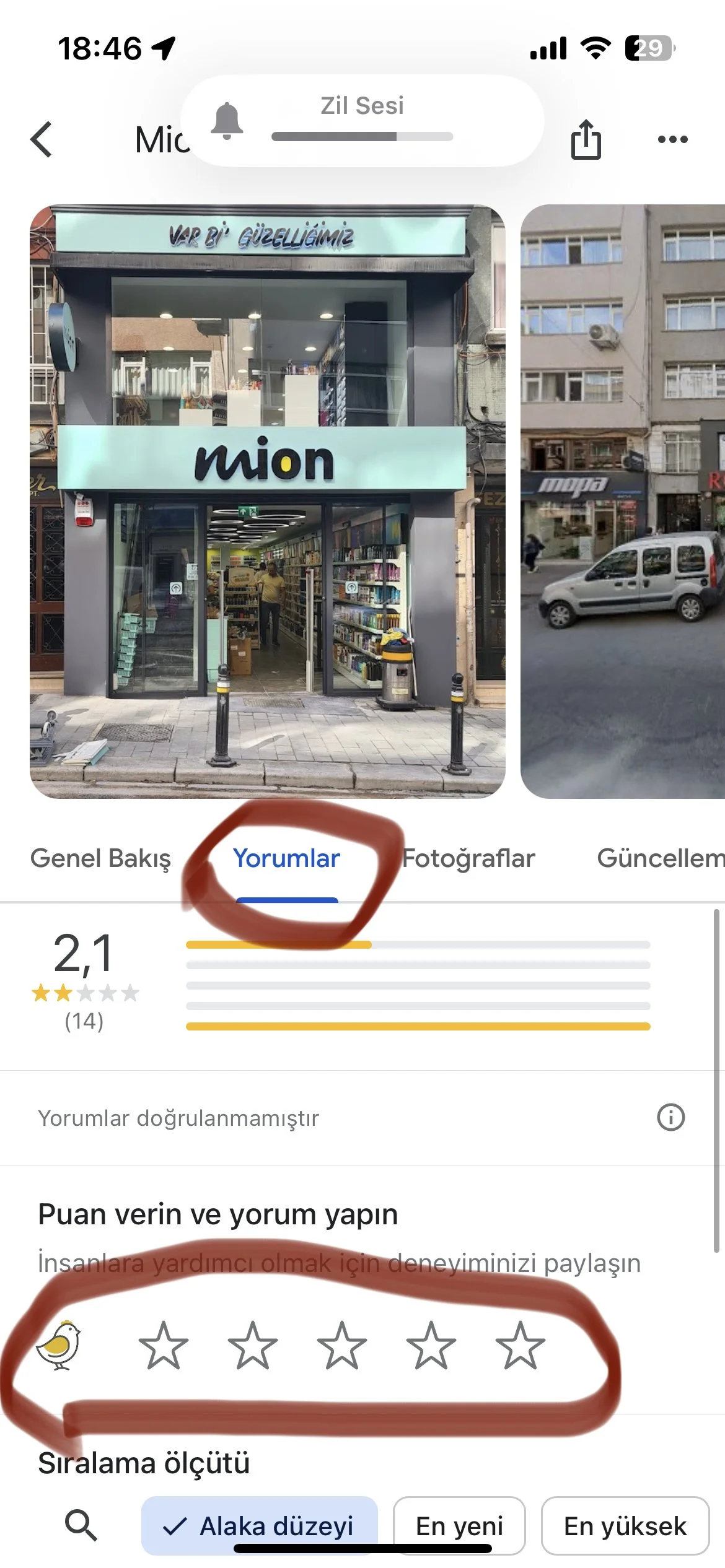 Aşağıdaki butona tıkladığında karşına bir Mion şubesinin Google sayfası çıkacak. Mion, Migros’un geçtiğimiz sene yaygınlaştırdığı kozmetik mağazası. Karşına çıkan sayfaya bir değerlendirme bırakarak, Migros’un kafes yumurtası satmaya son vermek üzere hala bir açıklama yapmamasıyla ilgili görüşünü belirt.
