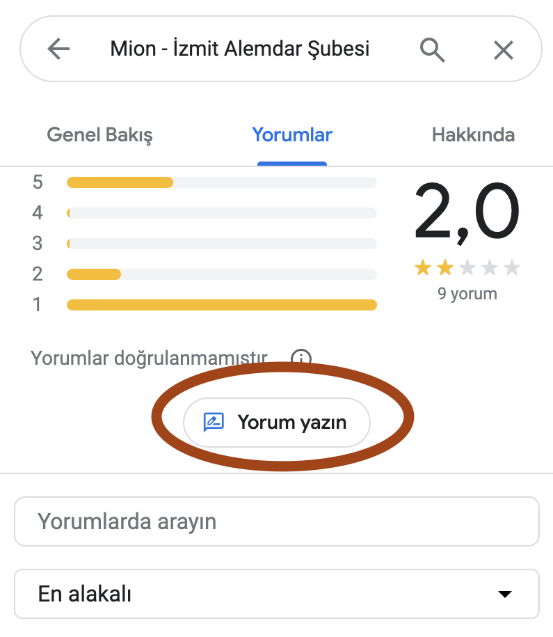 2. Google değerlendirmesi