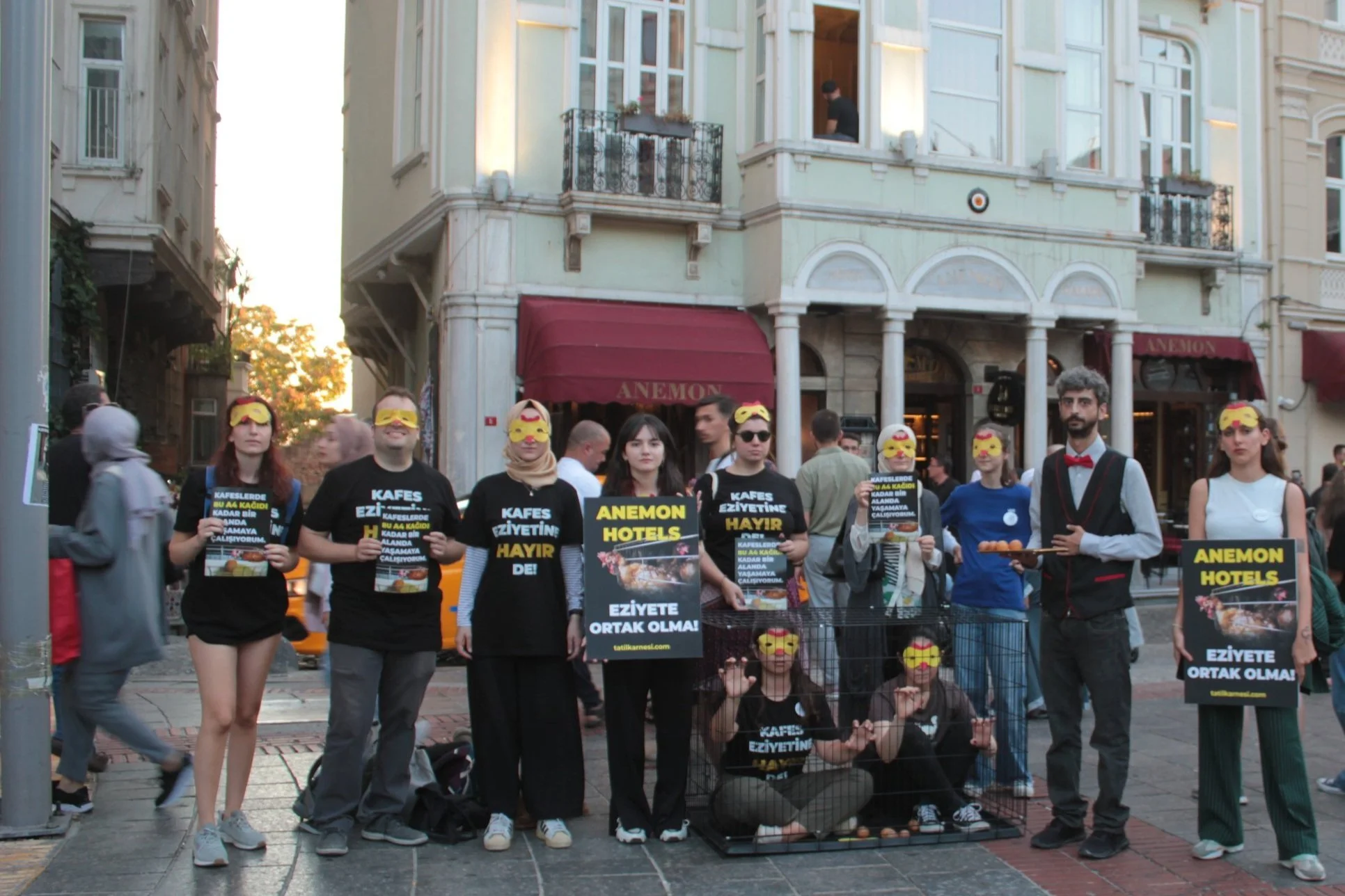 Tatilkarnesi raporumuz en büyük 12 zincir oteli içerse de kampanyamız kapsamında ulaşabildiğimiz tüm oteller ile görüştük. Fairmont, Taşkonaklar, Maçakızı, Park Inn, CG gibi oteller de kafes eziyetine karşı olduklarını kamuoyuna beyan ettiler. Kampanya kapsamında Anemon’un en gözde şubelerinden Galata ve tekrar Antalya’da oteller önünde kafesli saha aksiyonları gerçekleştirdik. Anemon ile bu noktada direkt iletişim kurabildik ve kısa bir süre içerisinde onlar da kafes eziyetine karşı olduğunu açıkladı <3 Şu an Türkiye’nin en büyük 12 otel zincirinden 9’u kafes sistemini terk edeceğini açıklamış durumda. Kalan 3’üne çağrımız sürüyor, sen de imza vermediysen hemen buradan imza verebilir, otellere arayarak çağrını dile getirebilirsin.